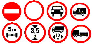 О наличии следующих дорожных знаков: